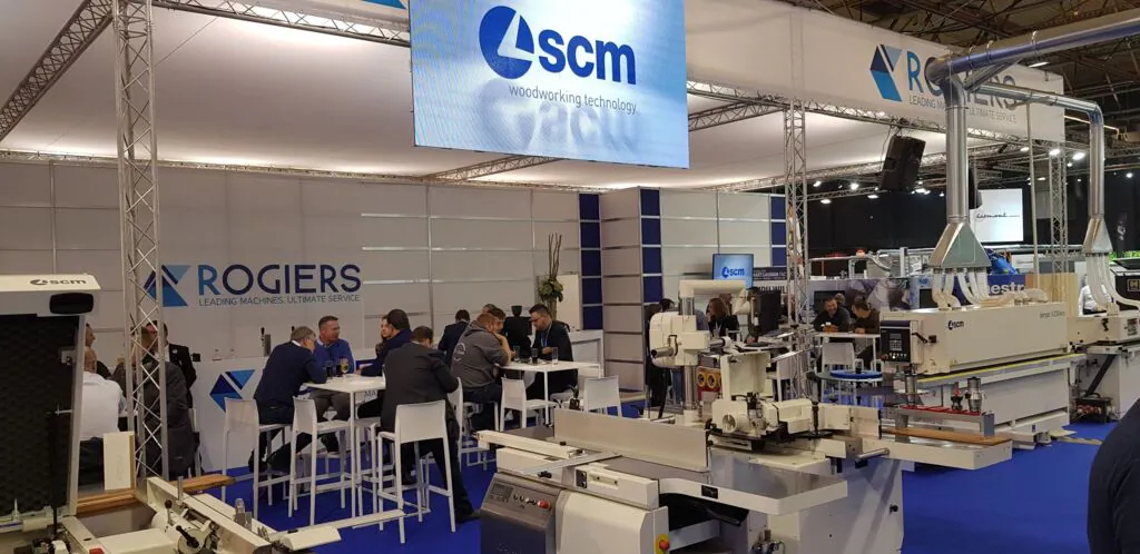 Als exclusieve SCM-dealer in België nam Rogiers deel met twee stands (een totale oppervlakte van meer dan 1000 m2) om de enorme en unieke collectie van hi-tech-toepassingen en -diensten aan de internationale markt voor te stellen. Bezoekers van Prowood kwamen met name alles te weten over de technologische voordelen die van de Italiaanse gigant traditiegetrouw niet alleen een leverancier hebben gemaakt, maar ook een partner voor de gehele secundaire houtverwerkende sector. “Werk eenvoudig. Werk digitaal” was het basisconcept van alle SCM-communicatie op de beurs en het leidmotief van alle technologische en digitale innovaties die werden geïntroduceerd.