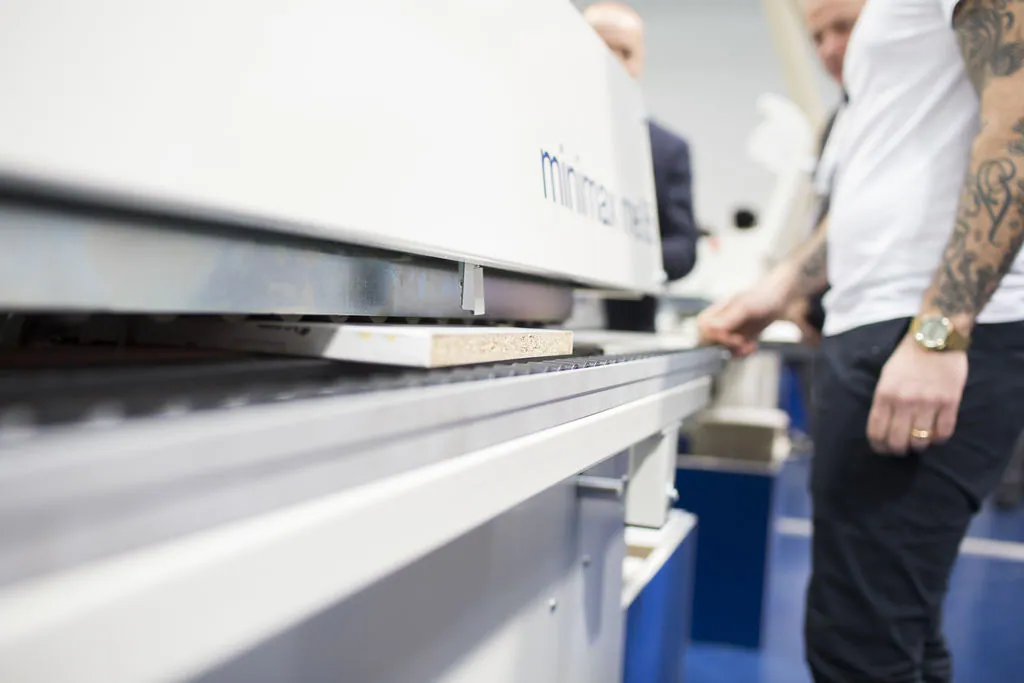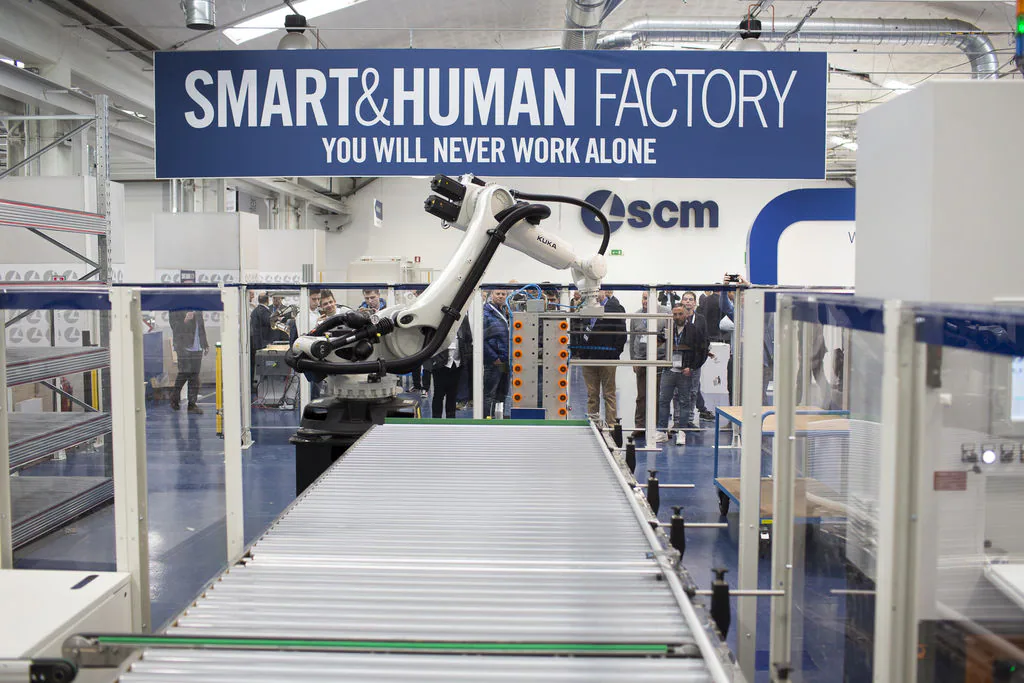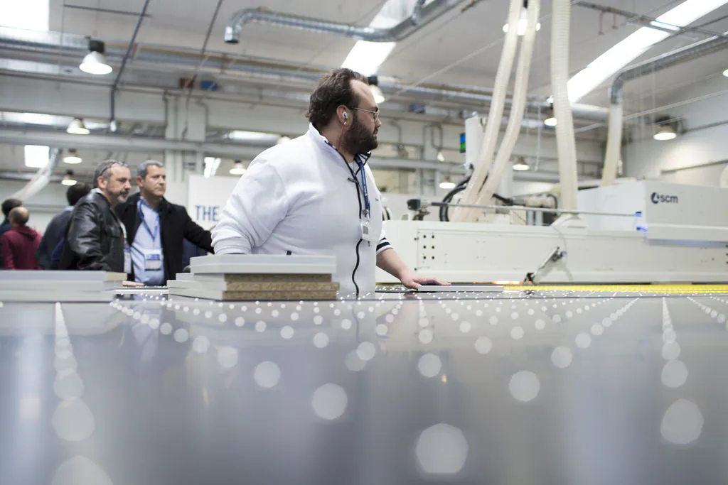 Tomorrow’s intelligent factory is on show at the Rimini Headquarters until 2 February. The first two days saw hundreds of enthusiastic business people and sales figures from numerous sectors of the woodworking and furniture industries. An automated production process designed and developed to face the challenges of mass customisation more effectively and strategically, integrated with industrial and collaborative robotics, where the different cells demonstrate a new relationship between human, robot and the best of SCM technologies.