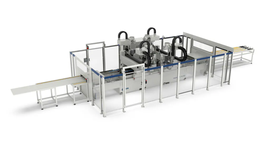 Integrating “morbidelli fx100” CNC drilling centre in this plant demonstrates the capability of this solution to machine with the same levels of efficiency both in stand-alone mode and within automated line.