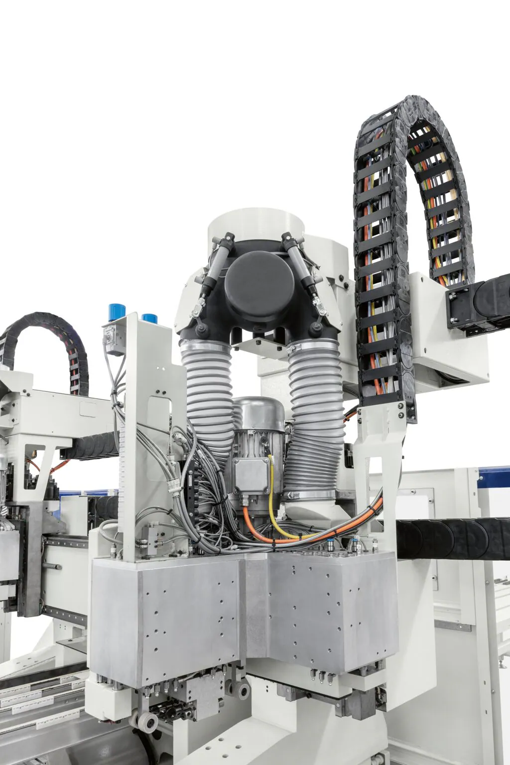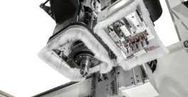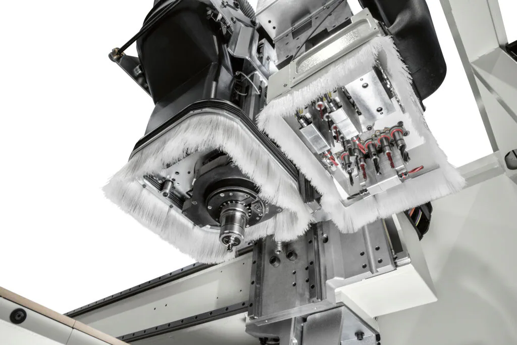 Finally, the machine guarantees maximum dust extraction and cleaning efficiency thanks to the chip deflector device which is automatically positioned according to the ongoing machining. Even the front safety enclosure cleaning operations are made easier by the dust extraction system connected to the machine’s centralised vacuum system.