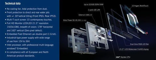 Wielodotykowy panel operatora eye-M to nowoczesny monitor który jest już instalowany we wszystkich przemysłowych rozwiązaniach SCM. Oprócz zaawansowanych funkcji sterowania jego główną zaletą jest całkowita szczelność. Specjalnie uszczelniona obudowa, zastosowanie radiatorów oraz specjalne zamocowanie przycisków sprawia że ekran jest odporny na wstrząsy, działanie pyłu czy wilgoci. SCM jest tak pewny swoich rozwiązań, że oferuje klientom 7 lat gwarancji na to rozwiązanie.