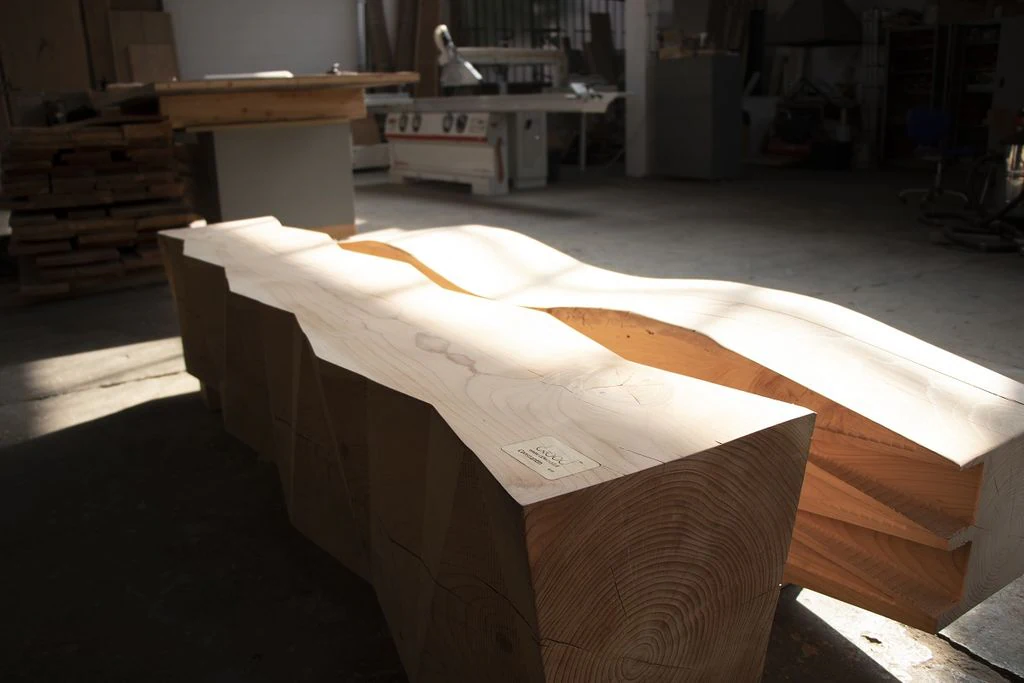 Thanks to the fact that Marco and Claudio have the possibility to directly cut trees, they handle very big wooden boards, which allow demanding work from a size point of view, a feature that not everyone can provide.