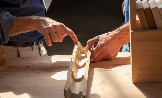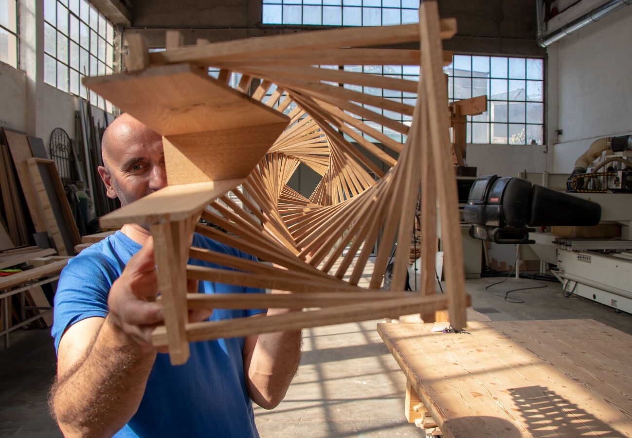 First of all, we introduce the founder, Marco, who after his studies at the Politecnico of Milan, the long-term collaboration with the professor and friend Marco Imperadori (Ordinary Construction Production and holder of the Chair of Design and Technological Innovation at the Politecnico di Milano ) and several years of work as an engineer, decided to change substantially his career, devoting himself to wood as the material of choice and exploring it (and working it) under all the possible and practicable aspects.