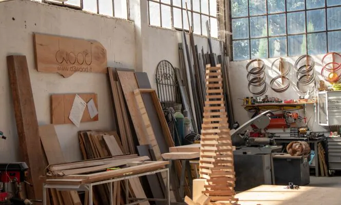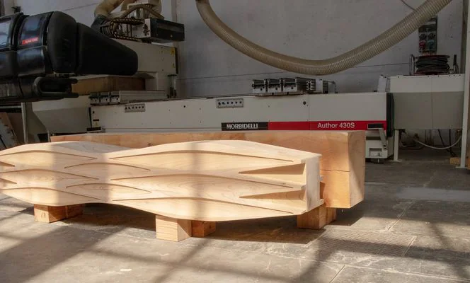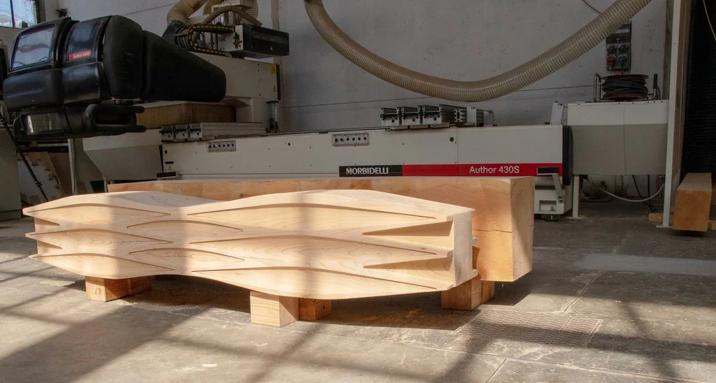 The woodshop where d3wood carries out its activity is equipped with a SCM minimax st 5es and a CNC SCM morbidelli author 430s, which together provide all the support needed to perform the eclectic workings Marco is capable of; in the heart of Lecco and loaded with prototypes, unique artworks, structures and artistic installations, this joinery is a real atelier that smells of various wood species and conveys a love for technology and woodworking, a combination that founds in Marco its maximum expression and accomplishment.