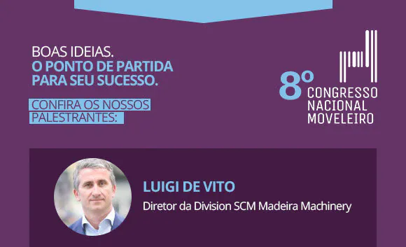 Luigi De Vito, diretor da divisão de máquinas para trabalhar madeira da SCM, estará entre os oradores do Oitavo Congresso Nacional Moveleiro que será realizado em Curitiba, capital do estado do Paraná nos dias 21 e 22 de setembro.