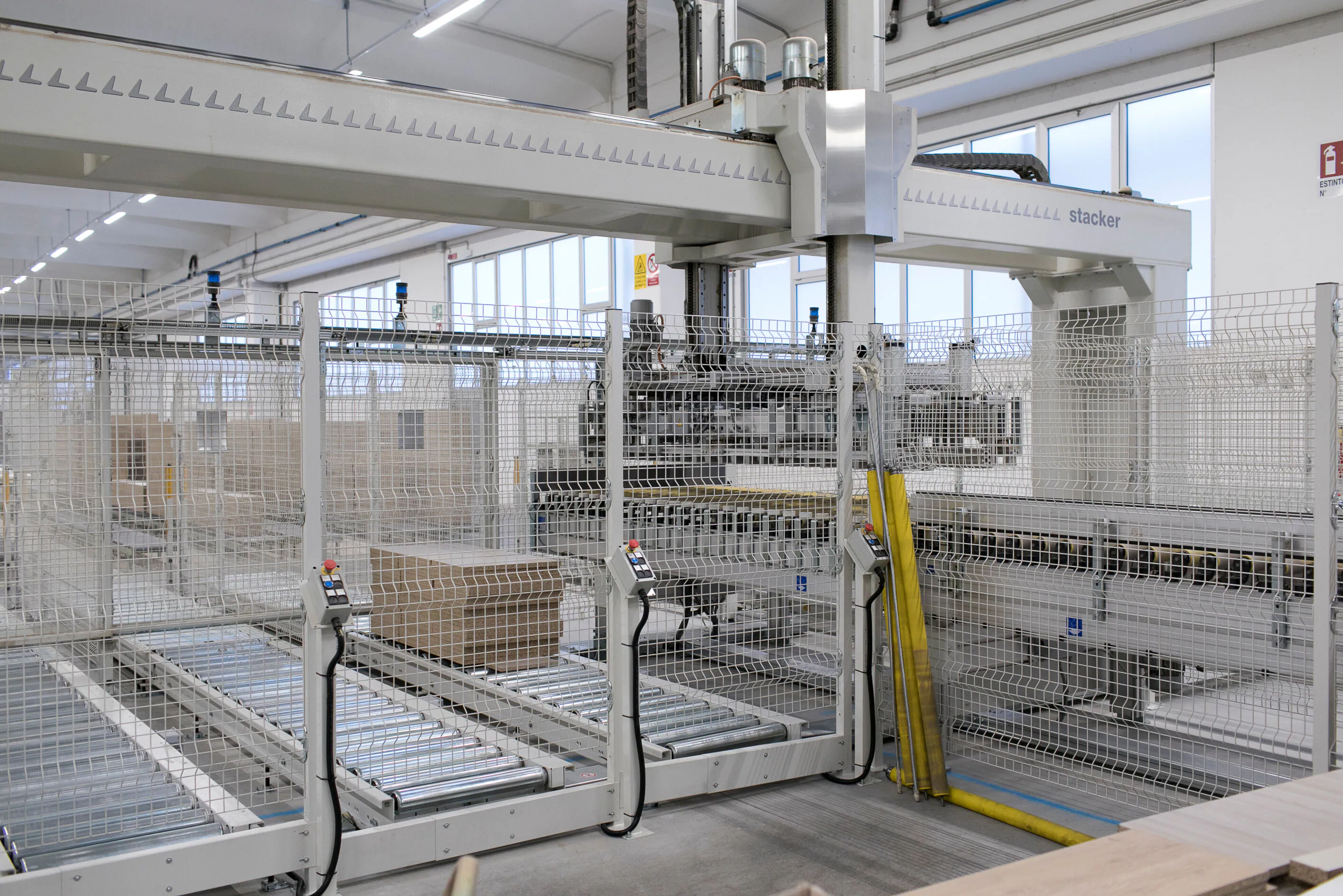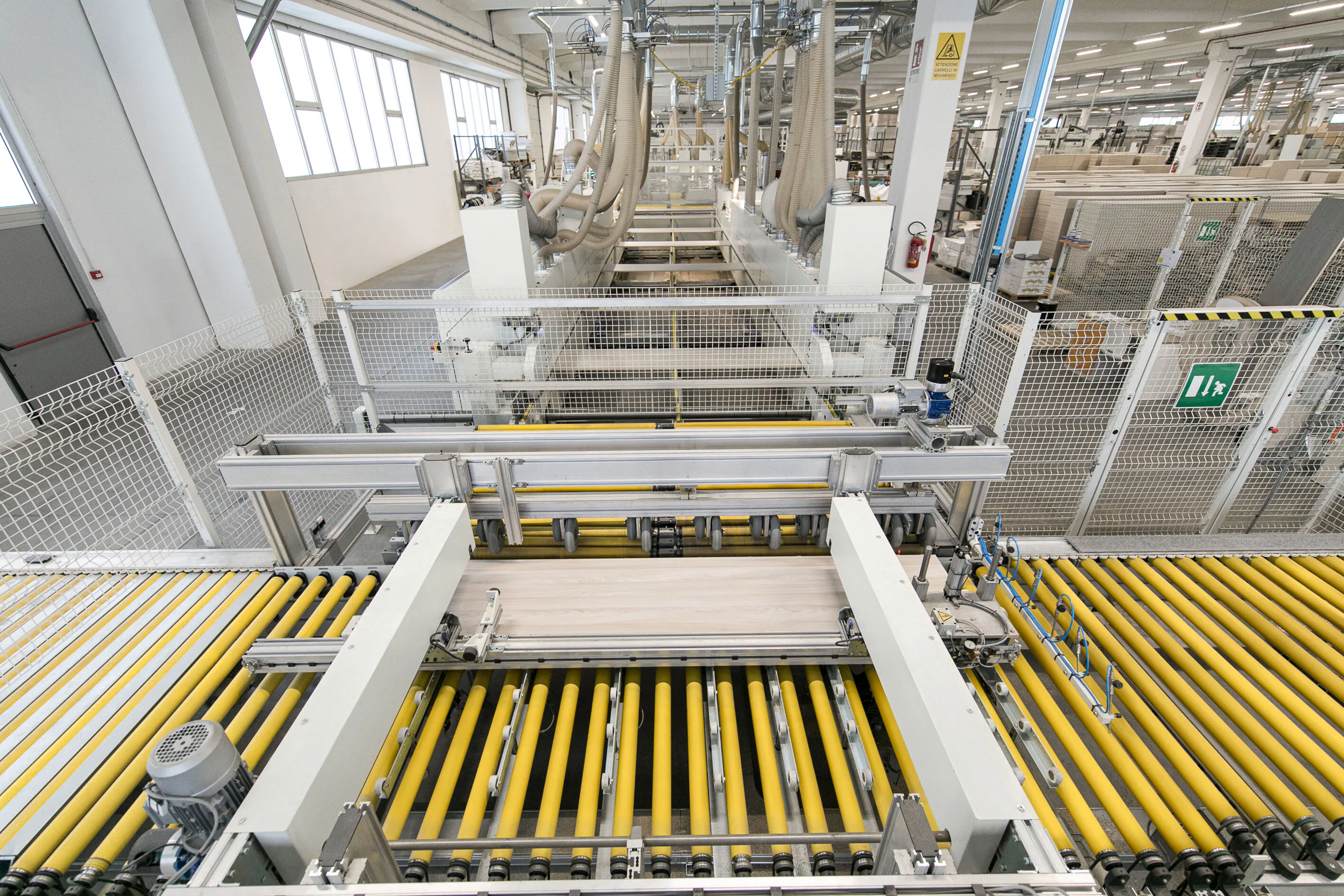 Auch die Logik, die den Produktionsprozessen zugrunde liegt, ist einzigartig. Bei Giessegi sind praktisch drei Fabriken in einer tätig: Alle arbeiten mit denselben Technologien für die Plattenaufteilung, das Besäumen und die Kantenanleimung sowie das Bohren. Im Hinblick auf Stärke und Format werden jedoch unterschiedliche Platten verarbeitet. Auf diese Weise können die Produktion beschleunigt und Abschnitte auf ein Minimum reduziert werden.