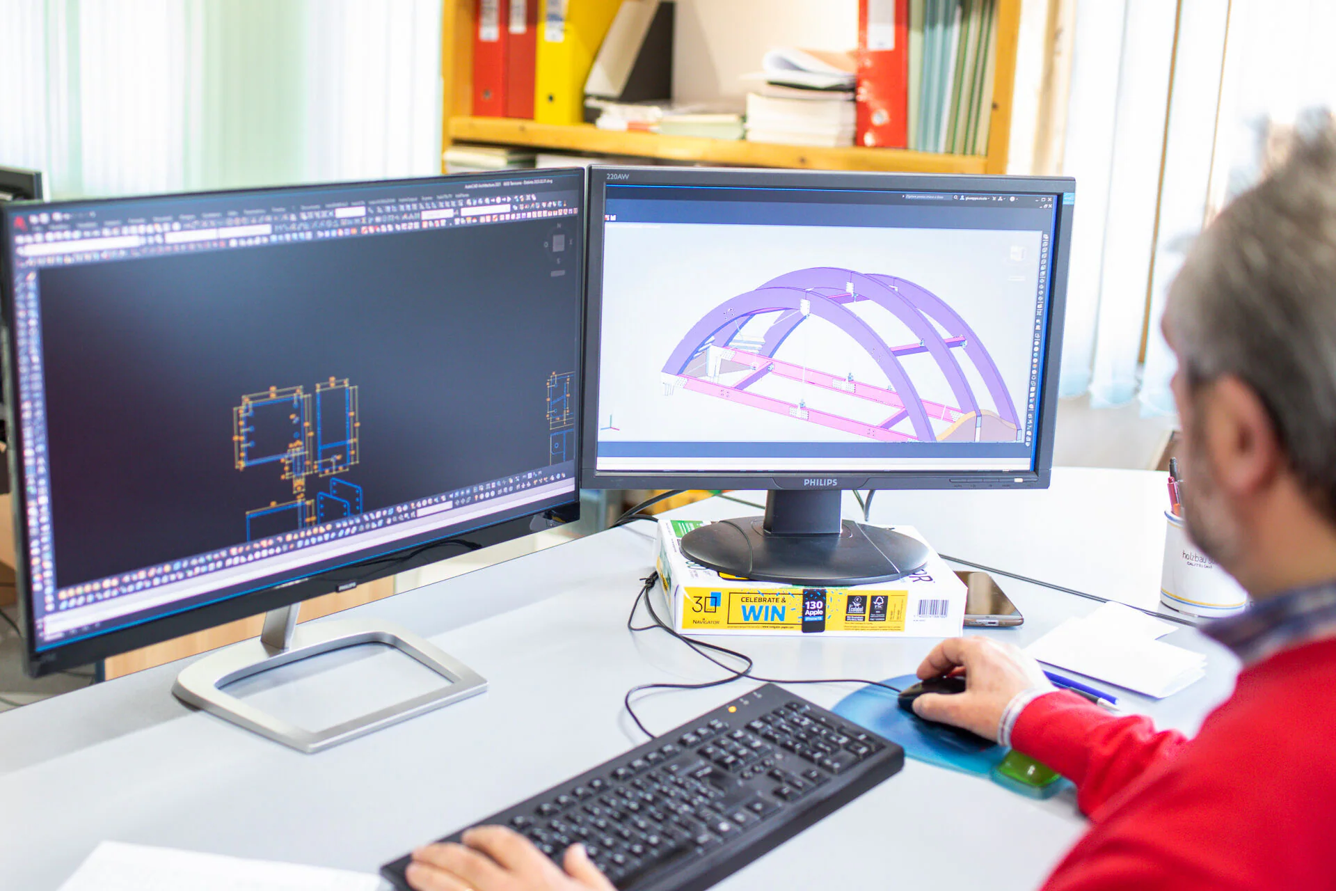 Obwohl die Bearbeitungsphasen jetzt direkt von den Maschinen ausgeführt werden, sind in anderen Phasen Eingriffe des Bedieners erforderlich. Die technische Abteilung spielt eine Schlüsselrolle, da sie die Strukturen entwirft und die Zeichnungen erstellt, die in der AREA-Maschinensprache kodiert sind und einen schnelleren und fehlerfreien Betrieb gewährleisten".