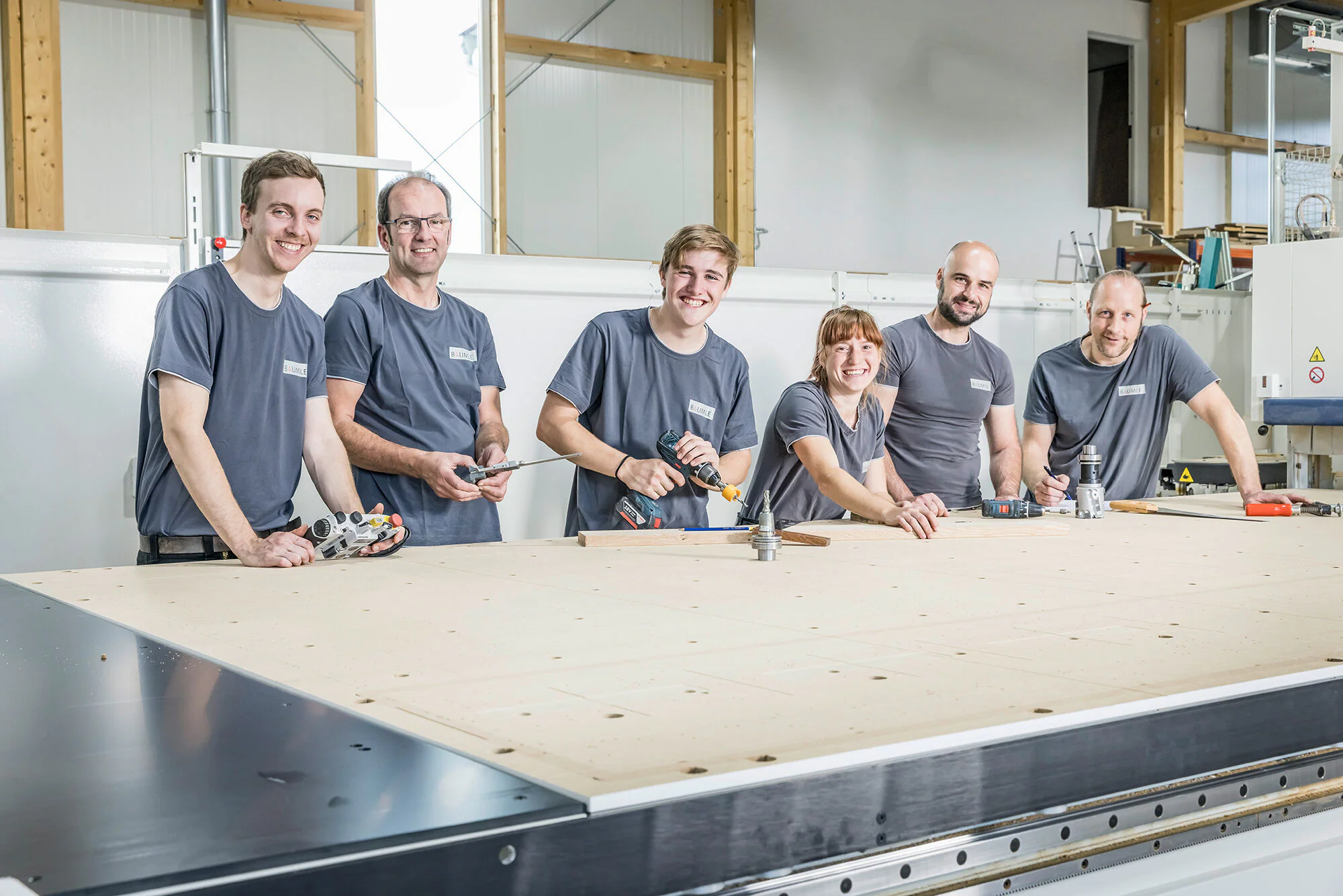 Digitalisierung und Automatisierung zählen heute zu den besonderen Stärken dieses Unternehmens, das gerade mal sechs Angestellte hat: einen Holzfachmann, einen Schreinermeister und Techniker, einen jungen Schreinermeister , zwei Gesellen-Fachkräfte (darunter eine Frau) und einen Auszubildenden.