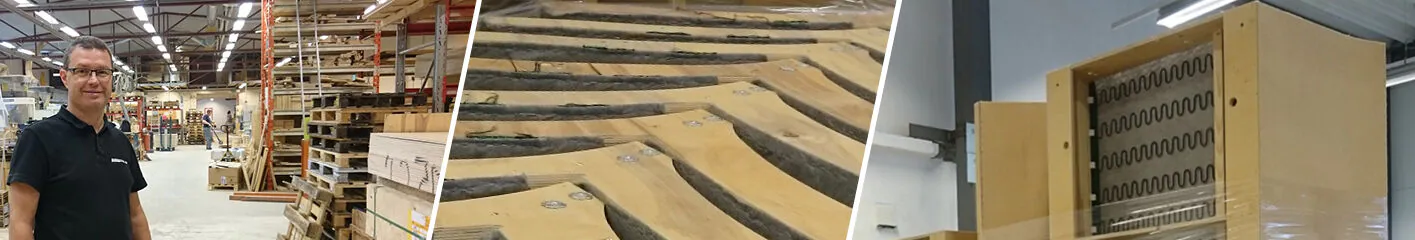 Møbeltre arbeitet hauptsächlich mit Sperrholzplatten, aber auch mit Brettschichtholz (also geleimt und laminiert) und geleimtem Kiefernholz das so stark wie Massivholz ist. Die Produktion befasst zur Zeit mit der Herstellung von Teilen für hochwertige Stühle die in einem Holzcontainer ausgeführt werden der selber ein hochwertiges Produkt darstellt.