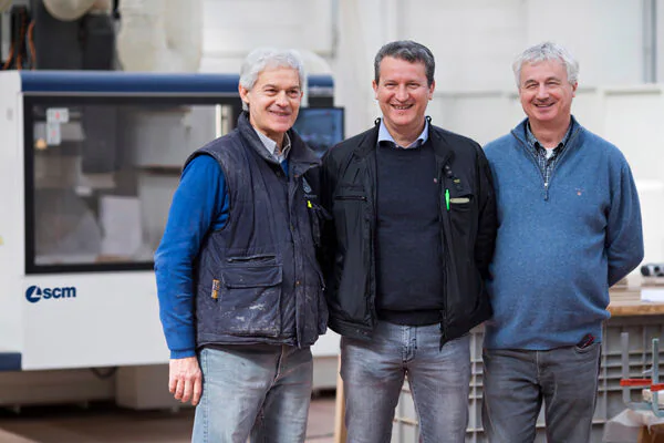 Paolo hat sich schon für Holzbearbeitung interessiert, als er noch ein kleiner Junge war. Sobald er von der Schule nach Hause kam, rannte er zur Werkstatt seines Vaters und half ihm, eine Schraube festzuziehen oder ein Brett zu befestigen, selbst, wenn das bedeutete, auf eine Leiter zu steigen, um es zu erreichen. Heute hat er zusammen mit seinen zwei Brüdern Fabio und Giorgio seine eigene Firma, die individuelle Möbel für Privathäuser, Restaurants, Hotels, Banken und Büros fertigt. Die Firma kombiniert die große Erfahrung, die sich im holzverarbeitenden Familienunternehmen angesammelt hat, mit computerisierten Bearbeitungszentren und modernster Maschinentechnologie. Darunter auch CAD CAM Systeme, welche die Produkte schon vor der Produktion zeigen und SCM Software, die jeden Bearbeitungsvorgang bis ins kleinste Detail programmiert.