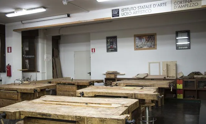 The students of this institute are very young, girls for the most part, tells us Mauro Menardi Menego, former bobsleigh and carpentry professor at the ISA State Institute of Art in Cortina d'Ampezzo, whom he attended when he was young and where he took his teacher's place. Before Mauro also his father had passed through the desks of this school ... smiling tells us that practically everyone in Cortina attended directly or at least have someone in the family who went through this high school of art.
