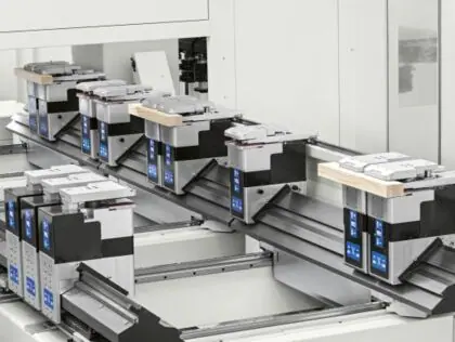 Die Konfigurierbarkeit der Arbeitsaggregate mit 4- und 5-Achsen-Elektrospindeln ermöglicht die Durchführung aller erforderlichen Arbeitsgänge für die Herstellung von Fenstern und Türen.