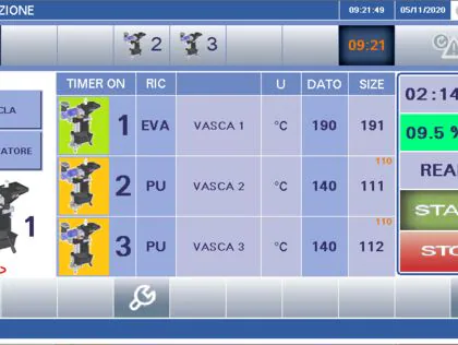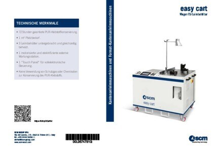 “easy cart” ermöglicht die gleichzeitige Verwaltung von bis zu 3 Leimtöpfen: 2 Leimtöpfe in der Wartungsposition im Spezialtank und 1 in externer Position mit Motorisierung für Reinigung, Wartung und Leimwechsel. Alle Leimtöpfe können für eine schnelle Prozessumstellung thermoreguliert werden.