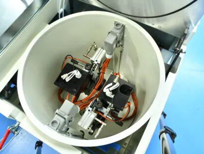 “easy cart” kann dank seines Rades und der geringen Gesamtabmessungen von weniger als einem Quadratmeter völlig unabhängig innerhalb des Produktionsbereichs platziert werden. Alle Anschlüsse sind mit Schnellkupplungen ausgestattet, um einen einfachen Aus- und Einbau zu gewährleisten.