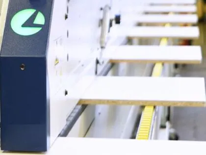 Industrielle Kantenanleimmaschine für höchste Bearbeitungsqualität bei allen Plattenwerkstoffen und Materialien, einsetzbar in die digitale, vernetzte und integrierte Fertigung.