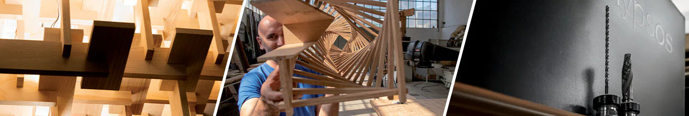 The D3Wood workshop opened its doors in 2017 and, after a brief experience with traditional joinery machines, was equipped with a “morbidelli” three-axis cnc machining centre. Following an initial collaboration in 2018 with Japanese architect Kengo Kuma for the development and realisation of the Kodama installation at Arte Sella, and beginning to work with other internationally renowned architects, the decision was made to make a further technological leap by equipping their workshop with a “hypsos” CNC machining centre.
