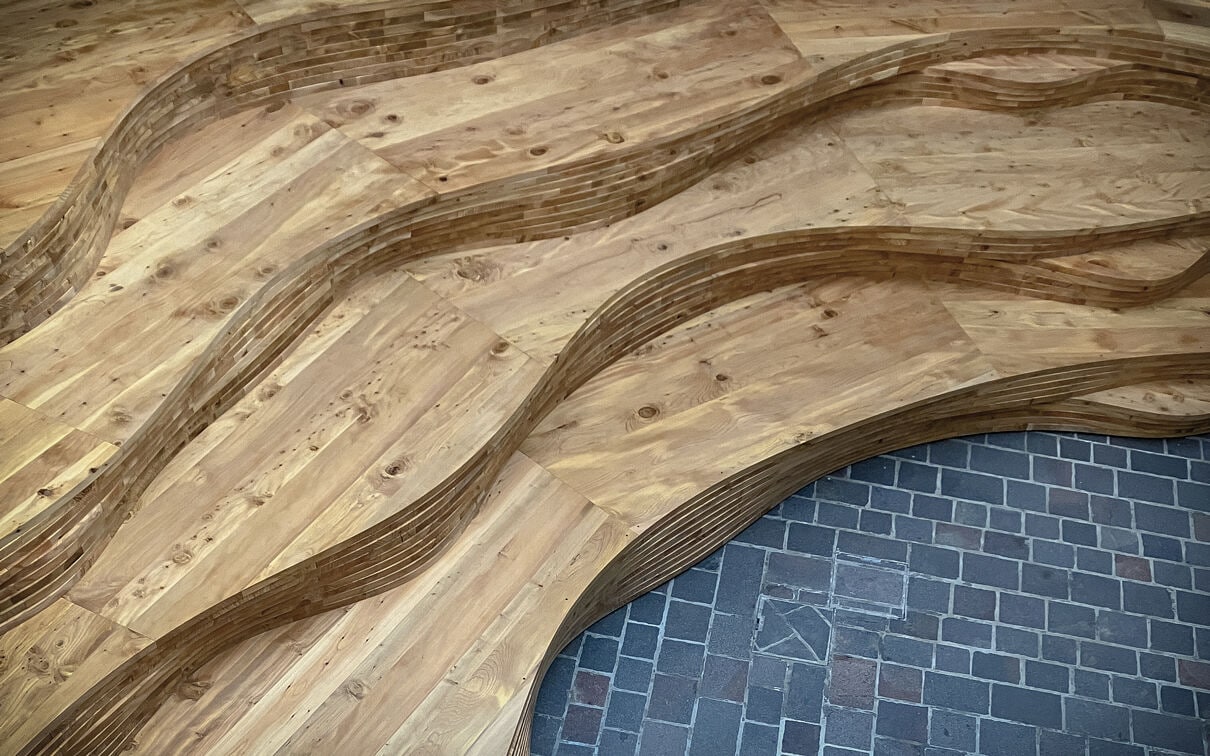 Since the beginning of 2020, this machine has been used to create important installations, structures created on behalf of major architects and artists, for whom D3Wood often not only produces the prototype, but also carries out all the structural calculations, the various load and strength tests, as well as installing the final work on site.
