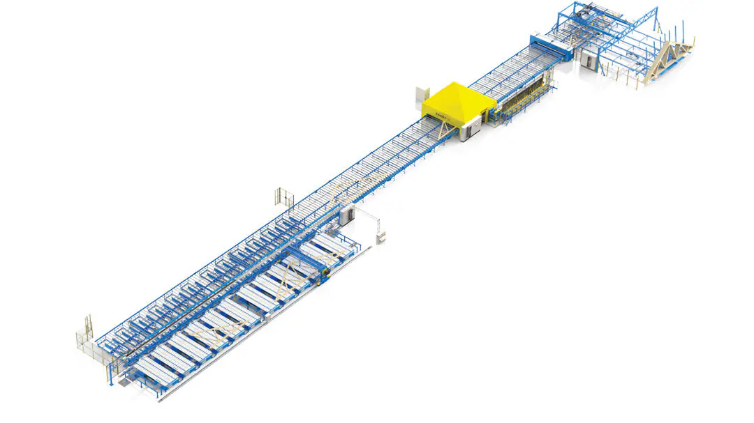 ADVANCED SYSTEM FOR PRODUCTION OF OPEN OR CLOSED WALL ELEMENTS. TOP LEVEL AUTOMATION WITH RECORD CAPACITY. CAD SUPPORTED.