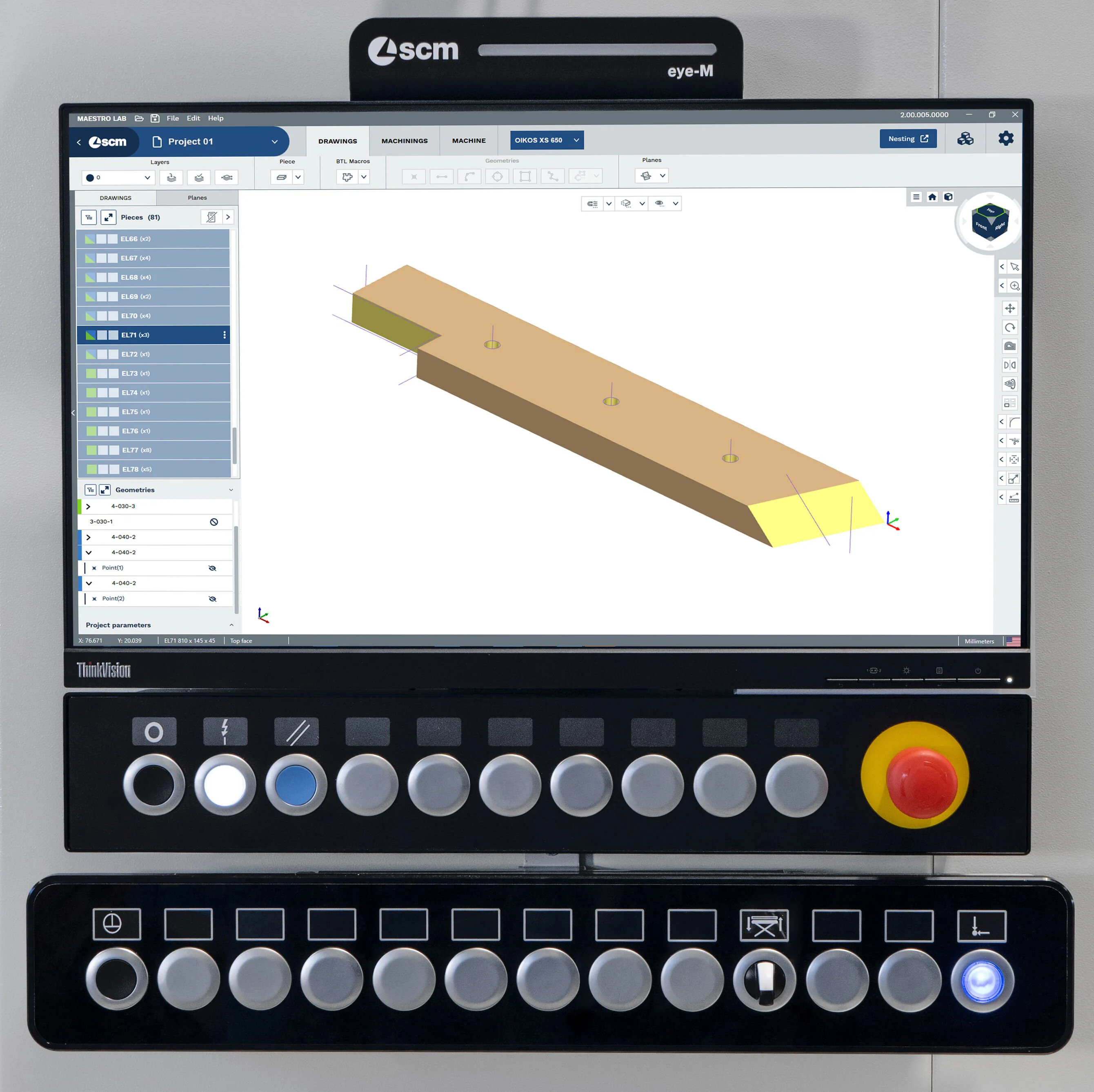 SCM enhances its OIKOS and AREA models with Maestro lab beam&wall, the updated programming software developed on the new SCM Maestro lab CAD/CAM.
