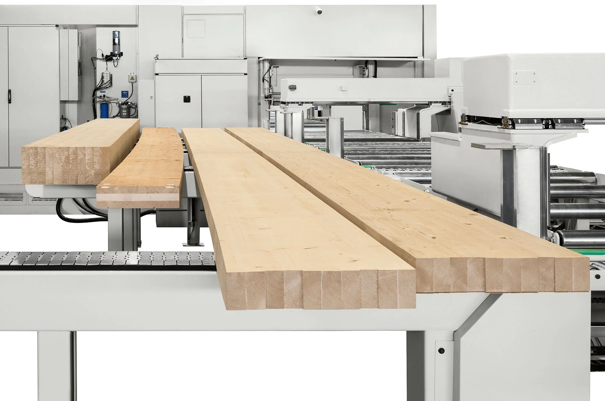 • OIKOS XS 650 boosts efficiency and flexibility for solid wood and glulam beam processing, handling cross-sections up to 2.13 × 1.02 feet—ideal for roofs, trusses, and prefabricated walls.