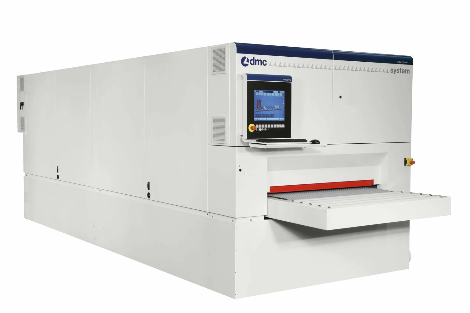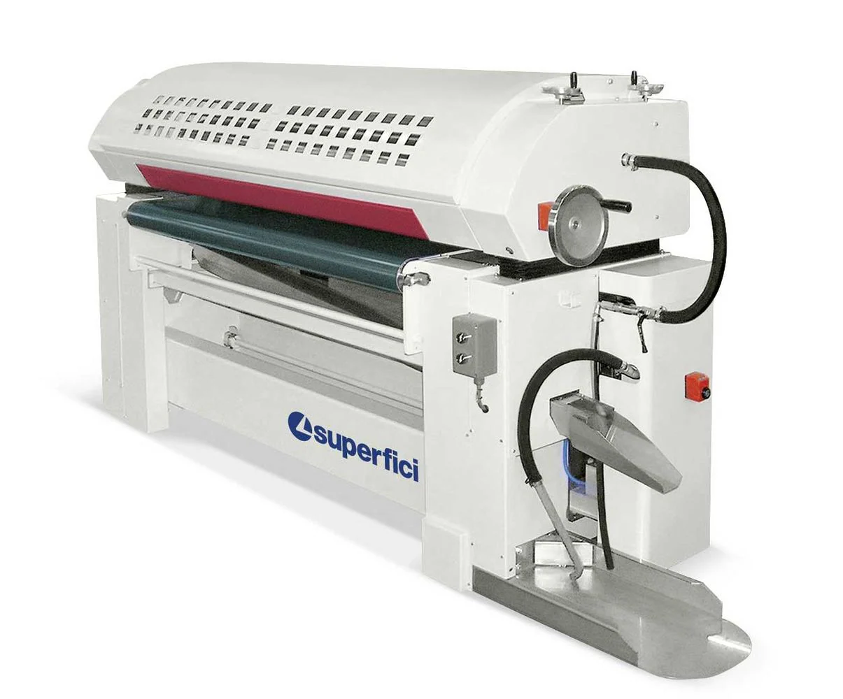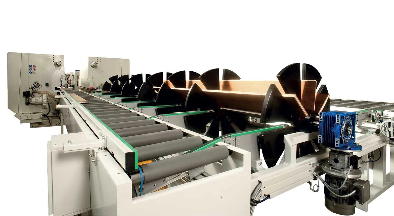 Automatic calibrating sanding machine. It can house up to 10 machining units.