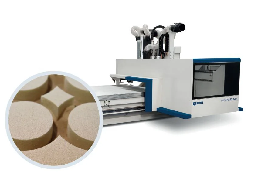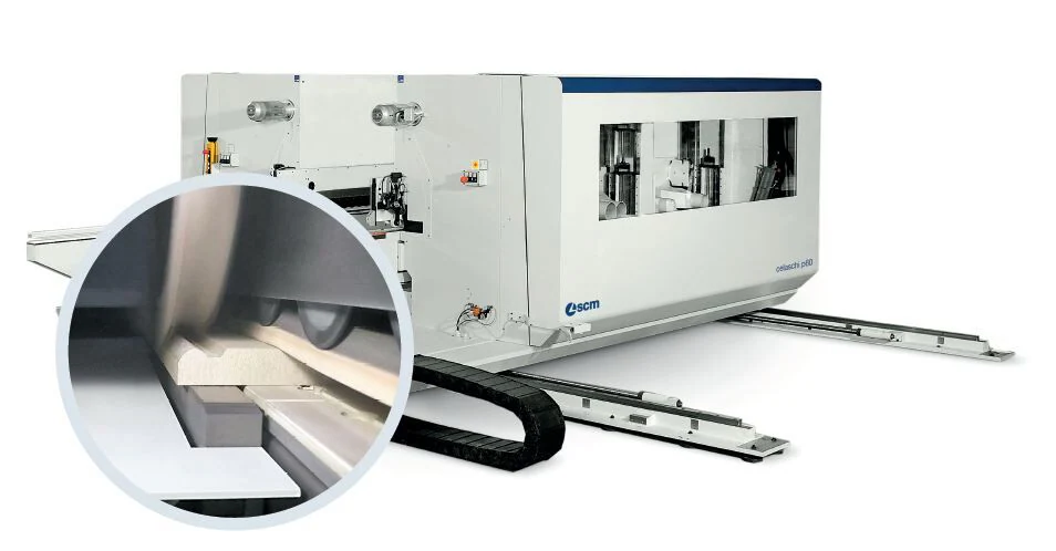 SCM boasts the widest range in the world of solutions for machining this highly innovative material, facilitating the choice of configuration that best meets the production needs of each company operating in this sector: from profiling machines, led by the celaschi p60, to beam saws, featuring the gabbiani g 2 and gabbiani a3, wide-belt sanders such as dmc system, the acclaimed spraying machine magnum by Superfici, and the numerically controlled machining centres for the housing industry, including the exclusive 5-axis “Made in SCM” accord 25 fxm and area.
