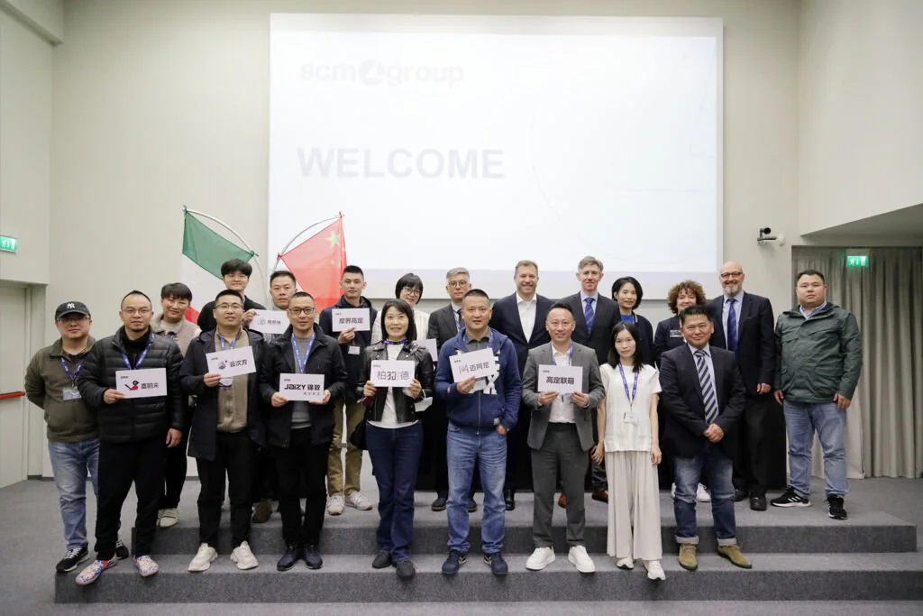 It was a pleasure to have prominent guests of the Chinese woodworking sector visit our production sites in Rimini and Thiene. A delegation from the association of furniture manufacturers, Customization Lianmeng Enterprise Management Co., Ltd. and the customer Shanghai Xuanke Decoration Engineering Co., Ltd. were accompanied on their Italian tour by Fausto Piscaglia, SCM China Country Manager.