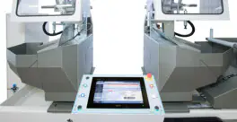 The locking systems of the profile are mobile with automatic movements linked to the angular positions of the cutting bases.