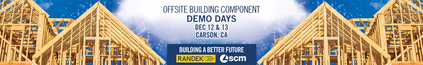 YOU’RE INVITED! Join us December 12 & 13 from 9 AM - 4 PM in Carson, California for SCM & Randek’s Offsite Building Component Demo Days.