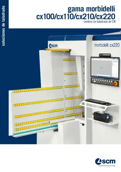 Centro de trabajo CNC con un amplio parque de herramientas para el fresado y el taladro que permite satisfacer cualquier exigencia en el mecanizado de la madera y de los materiales con características físicas similares.