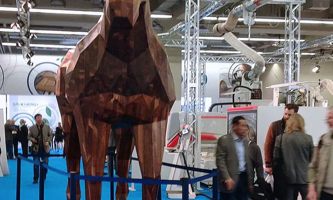 Grande interesse ha suscitato il Cavallo Pace by Riva 1920, interamente in legno, alto 3,60 mt e lungo oltre 5 metri, prodotto con un centro di lavoro Chronos, Routech.