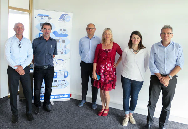 Nella foto da sinistra: Andrea Aureli, Ceo di Scm Group; Wolfgang Grimme, fondatore di HG Grimme; Davide Masnada, Ceo di CMS; Consilia Grimme; Sarah Grimme-John e Marco Mancini, Cfo di Scm Group.