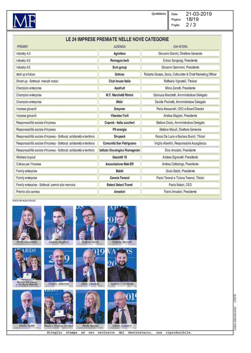 Scm Group è tra le eccellenze emiliano-romagnole premiate da Milano Finanza alla prima edizione dei Romagna Awards. Al nostro gruppo è andato il Premio “Industria 4.0”, importante riconoscimento agli investimenti effettuati nelle tecnologie IoT per supportare il cliente monitorando e ottimizzando i processi produttivi fino ad arrivare ad una manutenzione sempre più intelligente e produttiva. A ritirare il Premio, il Presidente di Scm Group Giovanni Gemmani che ha sottolineato la capacità del gruppo di innovare per continuare ad essere leader mondiale e dare una risposta sempre più performante alle nuove sfide tecnologiche del settore.