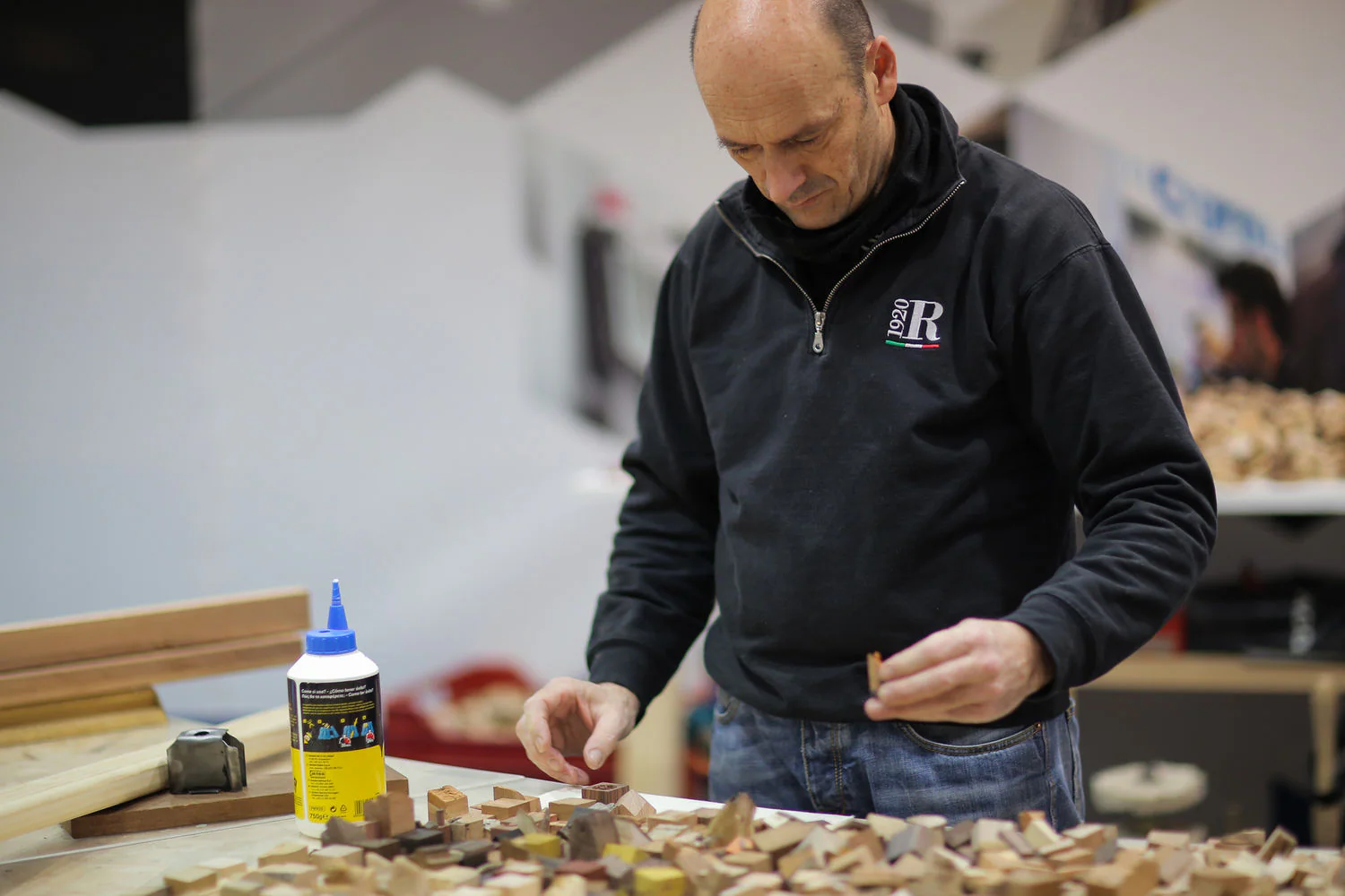 It was right in the Scm Group showroom, that Molinari moved to begin work on his “500 kube”. A powerful artwork that captu- res the expression and unique manner of woodworking that this craft-artist achie- ves using traditional Minimax and Scm machines.