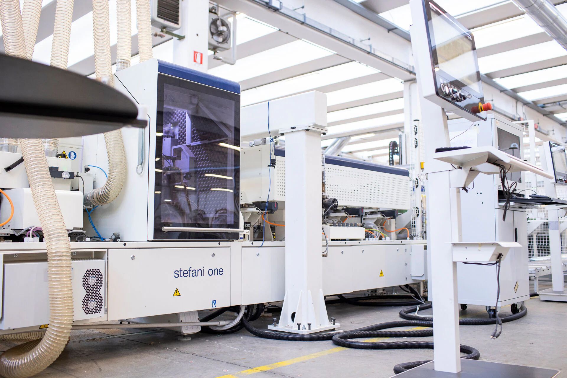 Ma, soprattutto, la cella nesting è parte di un sistema produttivo integrato che la vede operare in sinergia con una cella di bordatura e squadrabordatura flessibile “stefani cell H”. “Oggi possiamo produrre pezzi in un flusso il più fluido possibile – prosegue Sola -. Rispetto ai macchinari precedenti riusciamo a monitorare nel continuo le prestazioni. La cella nesting è facile ed intuitiva, ci dà la possibilità di formare gli operatori in tempi veloci e ci permette di raggiungere il massimo dell’efficienza nel minor tempo possibile. Per alcuni tipi di prodotti, inoltre, possiamo anche pantografare e trasformare il prodotto a misura finita evitando lavorazioni successive; cosa non possibile con una sezionatrice a lama.