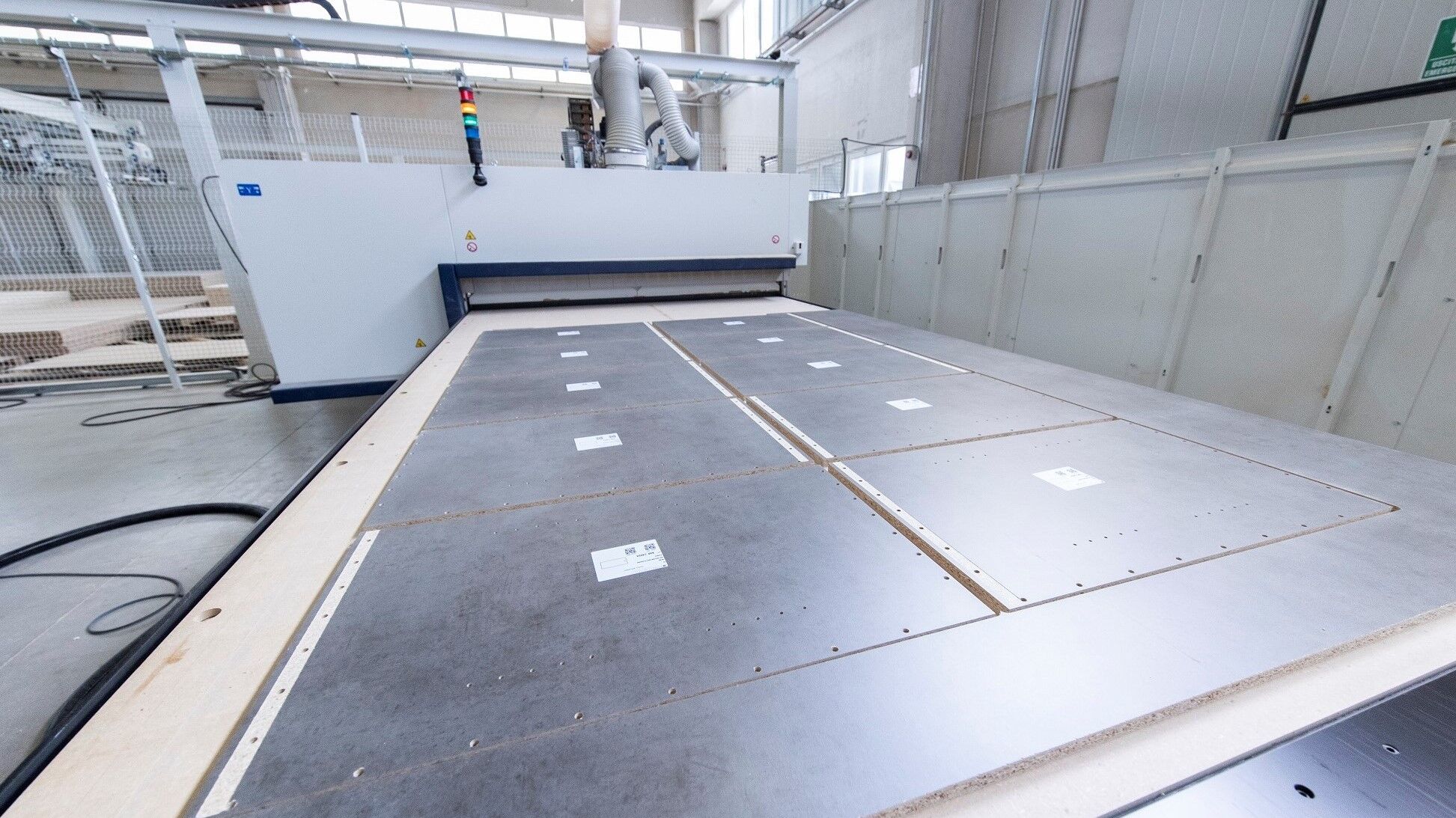 La cella lavora pezzi sia in mdf che in truciolare. La sezionatrice è veloce, precisa e garantisce prestazioni di altissimo livello. In particolare può movimentare e tagliare pannelli fino a 4250x2200 mm di dimensione, un grande vantaggio considerando che nel settore degli allestimenti si tende ad utilizzare pannelli molto grandi, oltre che leggeri, per favorire la posa in cantiere.