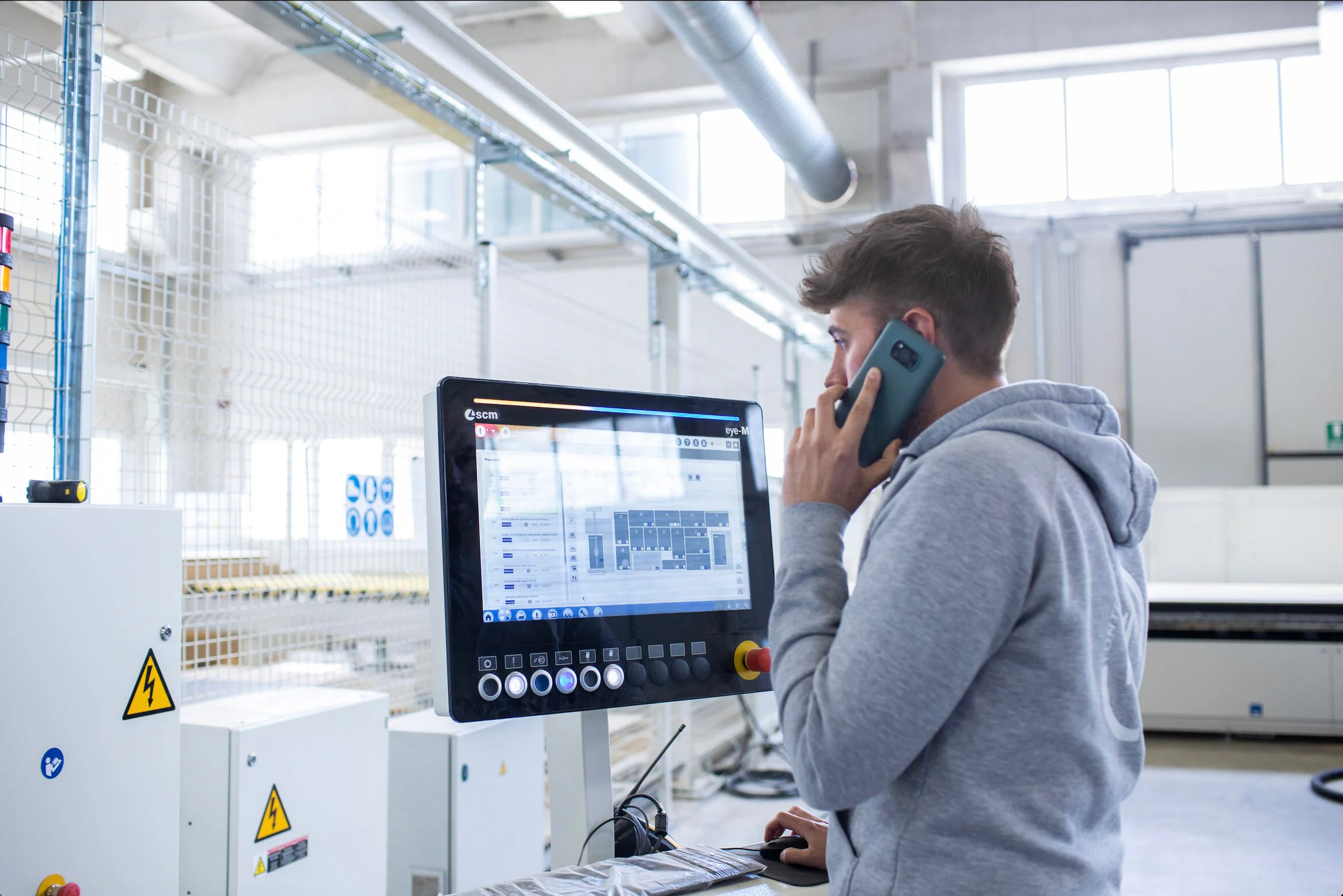 Alex Baldassarri è uno degli operatori di Fontemaggi che hanno vissuto e creduto per primi in questo cambiamento: “Grazie ai nuovi macchinari 4.0 di SCM abbiamo aumentato notevolmente la produttività, non solo perché abbiamo potuto abbattere i tempi ‘morti’ grazie alle modalità di carico e scarico automatico, ma soprattutto perché grazie al flusso informativo tra ufficio di progettazione e fabbrica relativo alle commesse da produrre e ai sistemi di etichettatura automatica presenti sia nella sezionatrice che nel centro di lavoro cnc possiamo avere un controllo di ciascun componente, dal progetto all’imballaggio”.