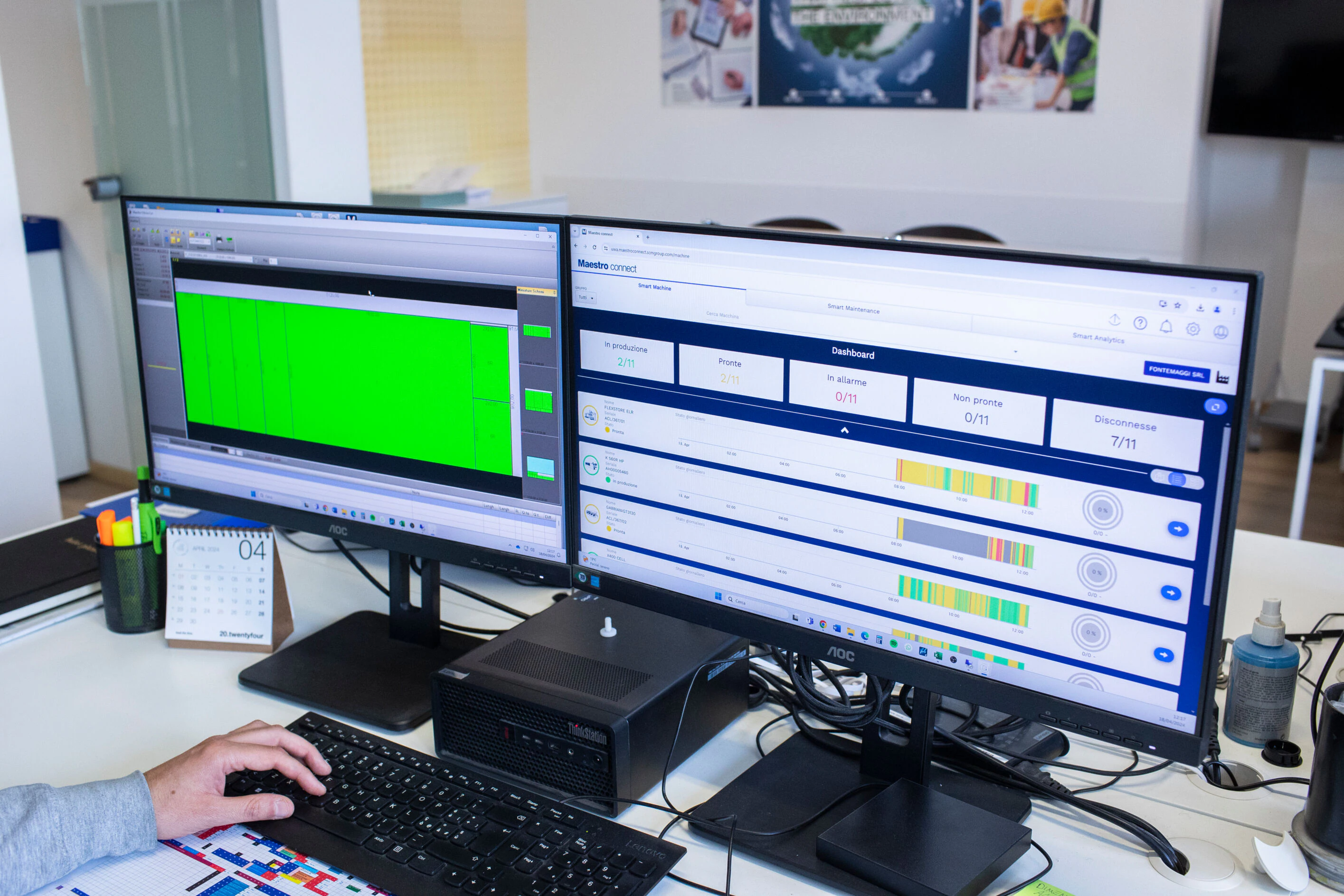Entrambi monitorano la produzione in macchina attraverso Maestro connect, la piattaforma IoT di SCM, potendo in questo modo sia accorgersi di eventuali fermi macchina, che verificare lo stato di salute complessivo delle macchine e la loro performance produttiva in relazione agli obiettivi di produzione da raggiungere giornalmente. Tutte le macchine di Fontemaggi sono infatti connesse e possono così beneficiare di tutti i vantaggi offerti da Maestro connect. Tra questi, la possibilità di aprire ticket di assistenza tecnica e ricevere risposte tempestive dal service SCM, poter consultare dati sulla produzione delle macchine in tempo reale, scaricare dall’applicazione tutti i report di produzione per una successiva e approfondita gestione e analisi interna volta a rendere i processi più efficienti e a risparmiare su costi e materiali utilizzati.