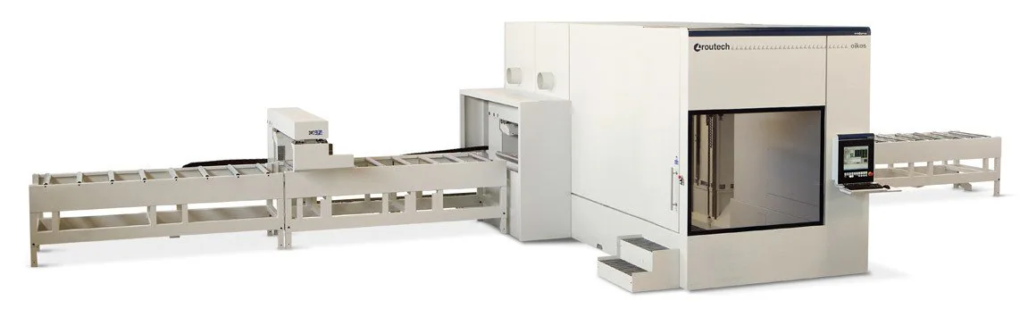 La lavorazione di ossature e di opere molto complesse di grande precisione è realizzata con il centro di lavoro a 6 assi OIKOS HT 12 di marchio Routech, dotato di ottime capacità di lavorazioni