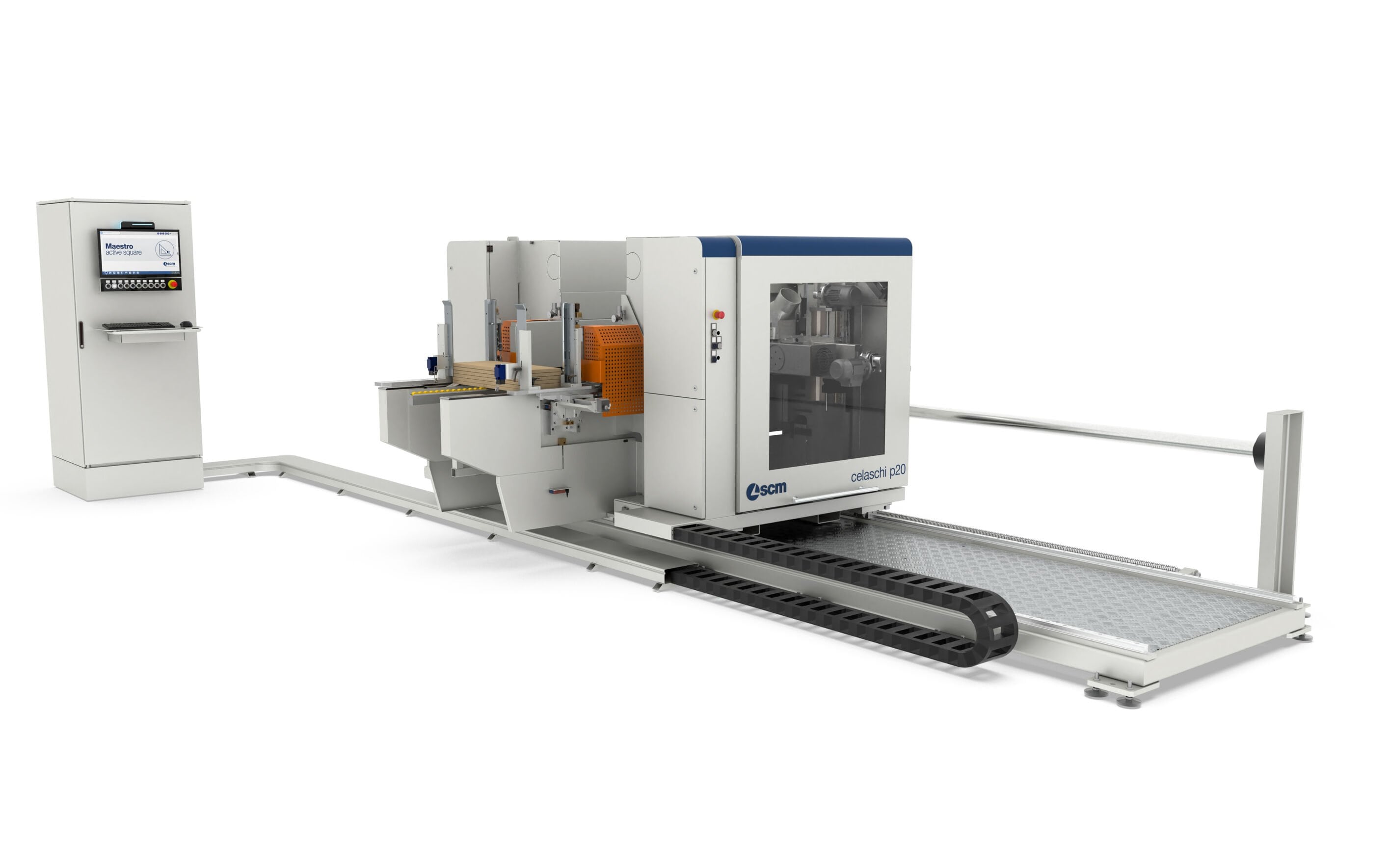 celaschi p20nuova squadratrice-tenonatrice doppia automatica, la più compatta della gamma.