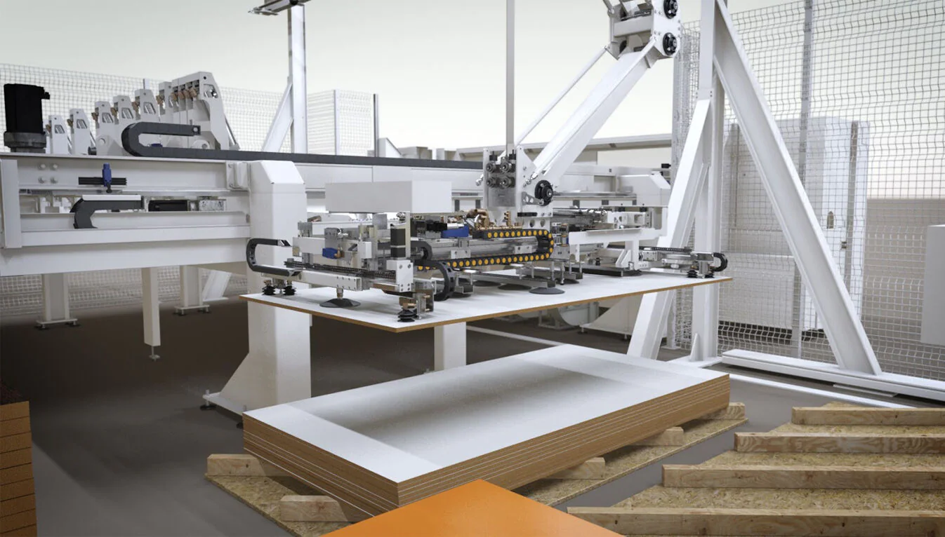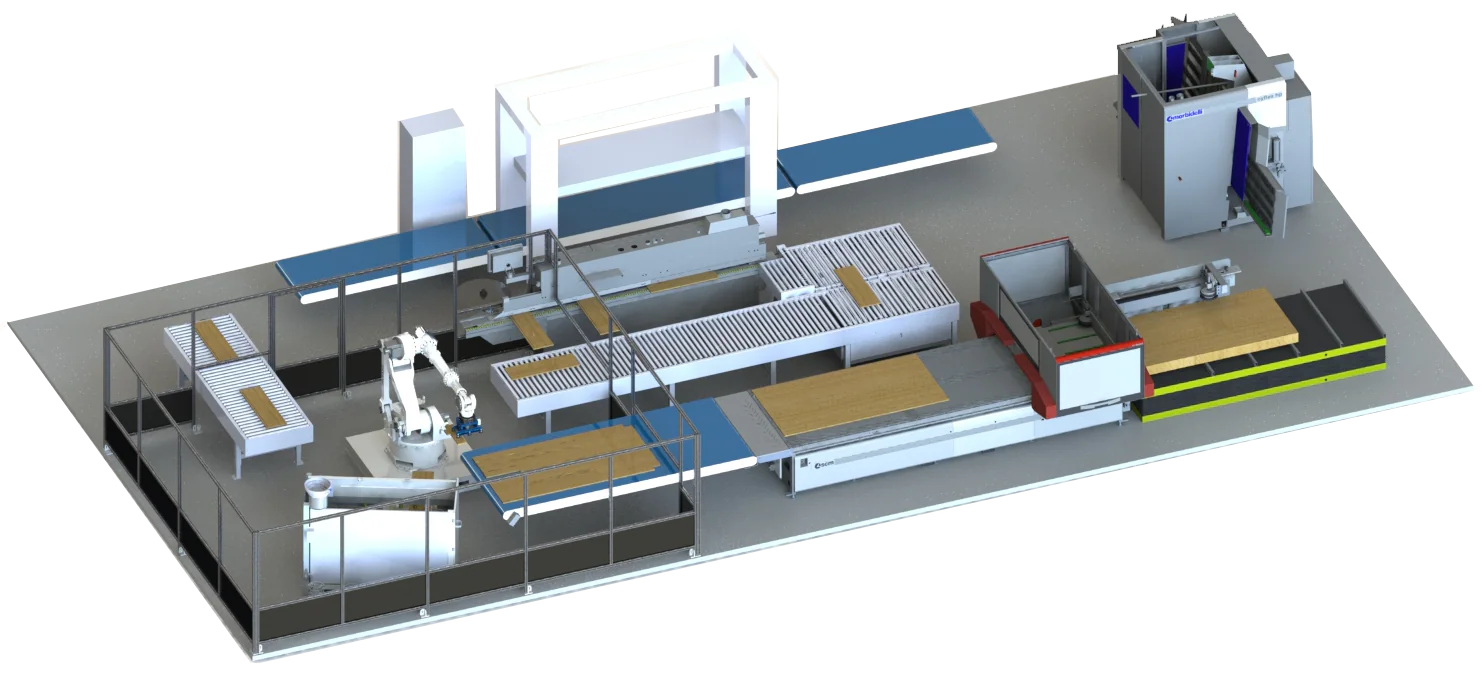 SCM’s Flexible Panel Processing Cell will be demonstrating flexible panel inventory management coupled with labelling and loading a nesting and sawing machine.