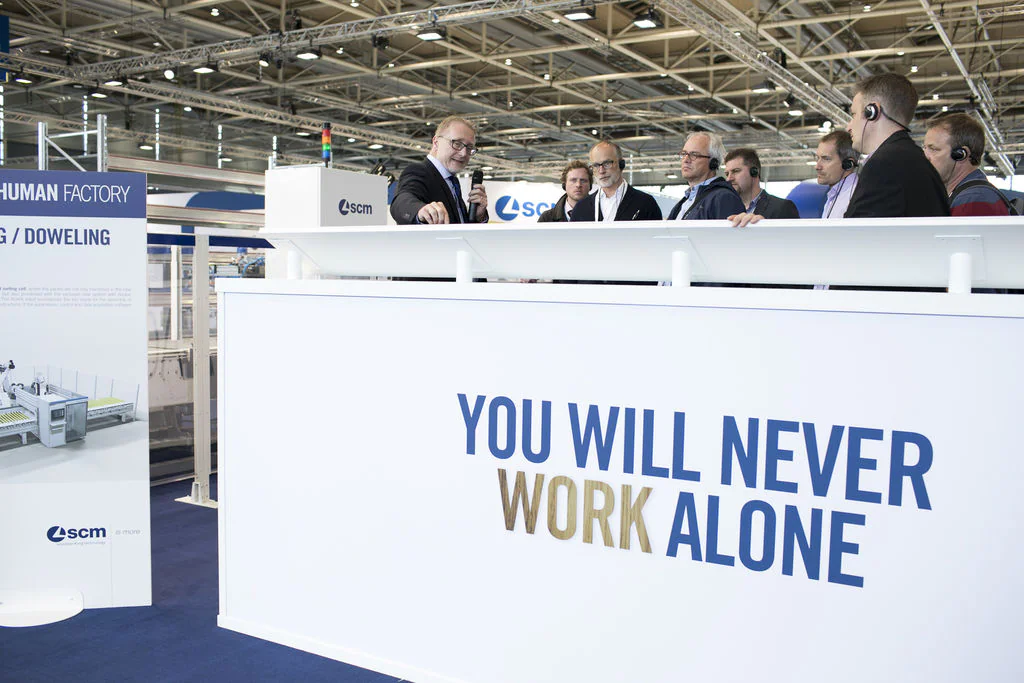Ligna prosegue con risultati straordinari. L’attuale edizione della Fiera di Hannover, la sessantesima per SCM, sta registrando un successo ancora maggiore delle precedenti edizioni. Sono oltre 70 i Paesi finora incontrati nello stand SCM con eccezionali opportunità di business in tutti i principali mercati internazionali. La terza giornata dell’evento, alla quale hanno partecipato anche Adriano e Alfredo Aureli, l’Amministratore Delegato del Gruppo, Andrea Aureli, il presidente Giovanni Gemmani ed il Direttore Generale Marco Mancini, si è contraddistinta per nuove visite da parte di delegazioni di clienti internazionali alle ultime novità SCM dedicate al settore. Enorme interesse per tutte le tecnologie: quelle per la lavorazione del pannello, a cominciare dai nuovi centri di lavoro per il nesting morbidelli e dalla nuova cella di bordatura stefani; quelle per il massello tra cui le ultime novità hypsos e balestrini; la nuova profilatrice e squadratrice celaschi p40; la nuova Oikos X per la carpenteria e le soluzioni integrate per il trattamento delle superfici. La Smart&Human Factory resta protagonista con le sue celle automatizzate e le diverse soluzioni integrate, come Flexstore hp. Grande affluenza anche allo stand Superfici nella Hall 16 con tech tour e live demo di cicli di verniciatura a rullo con essiccazione UV led svolti in collaborazione con diversi rinomati produttori di vernice. Da segnalare, durante la giornata, anche l’intervento di Federico Ratti, Direttore Innovazione di Scm Group, al Ligna forum con un intervento sul tema “Integrated manufacturing”.