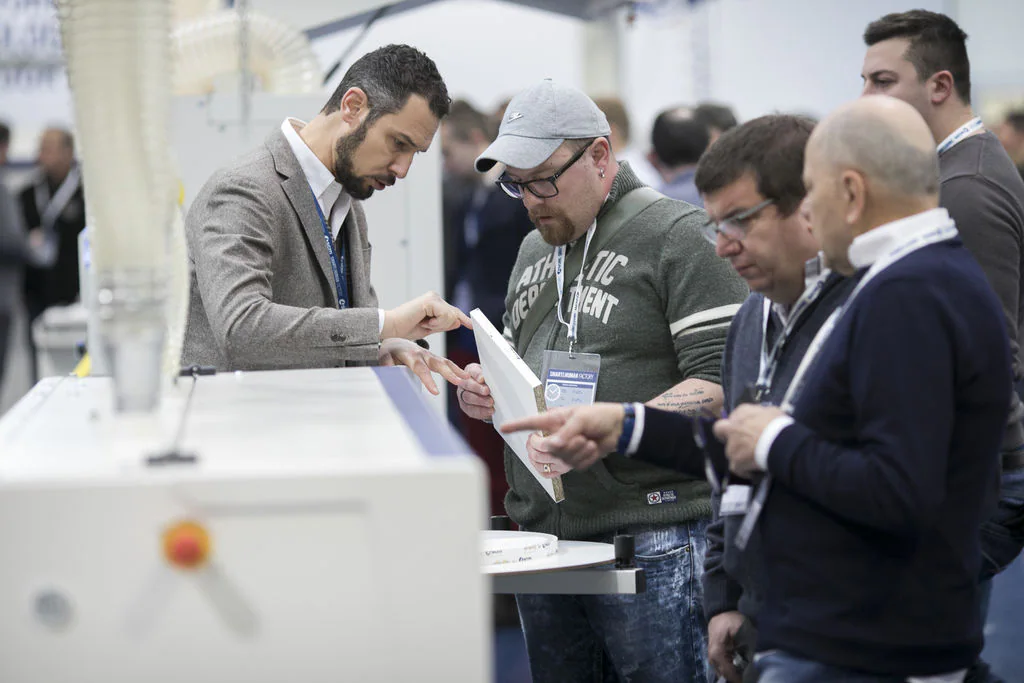 All'Headquarter di Rimini va in scena fino al 2 febbraio la fabbrica intelligente di domani, che in queste prime due giornate ha appassionato diverse centinaia tra imprenditori e commerciali dell’ampio e variegato comparto del legno e del mobile. Un processo produttivo automatizzato, studiato e sviluppato per rispondere in maniera sempre più efficace e strategica alle sfide della mass customization, integrato dalla robotica industriale e collaborativa, dove le diverse celle mostrano un nuovo rapporto tra uomo, robot ed il meglio delle tecnologie SCM.