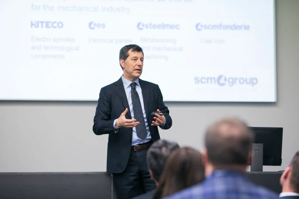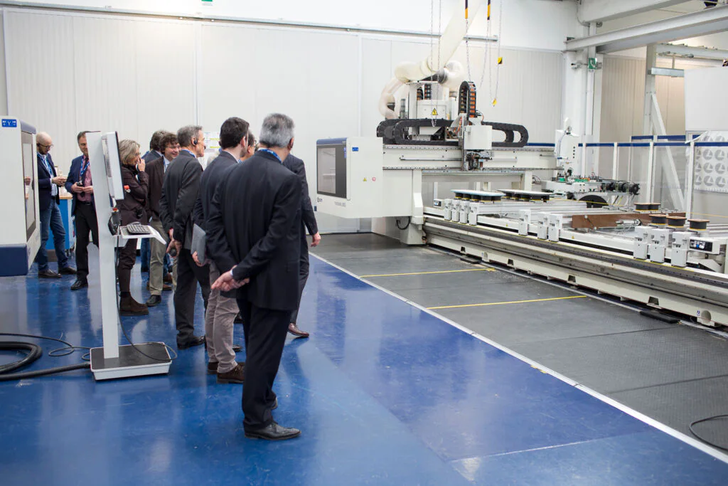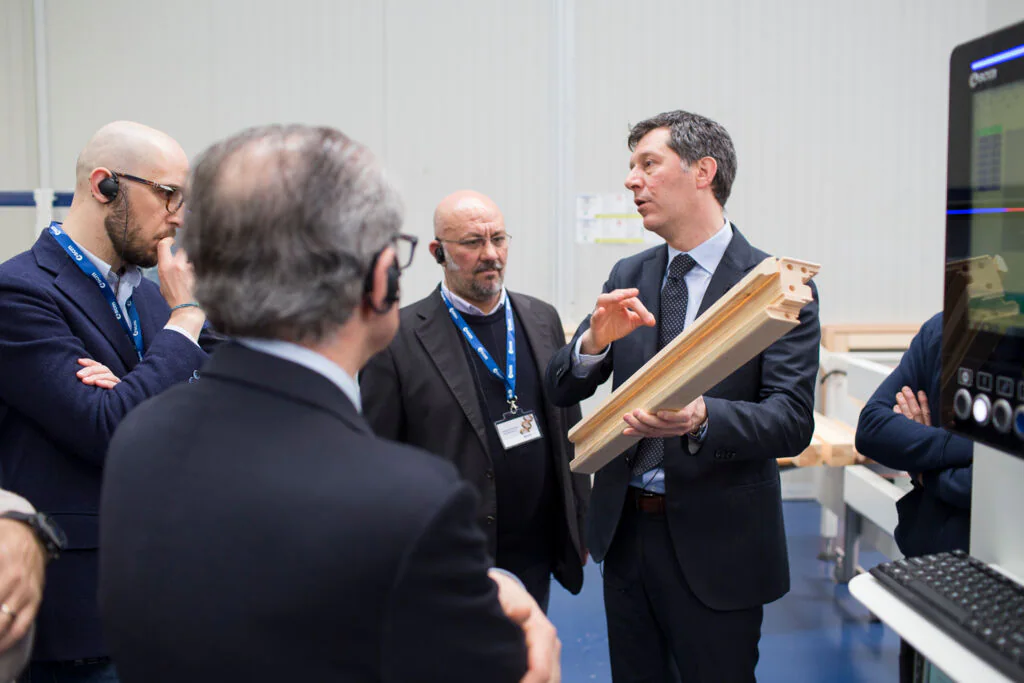 La delegazione è stata accolta dal Presidente di Scm Group Giovanni Gemmani che ha illustrato la storia, i valori e le diverse realtà aziendali e tecnologiche che rappresentano oggi il Gruppo. Il Direttore Tecnico Federico Ratti ha quindi accompagnato i visitatori nel nuovo Technology Center di SCM e nel cuore del Digital Hub, vetrina delle soluzioni all’avanguardia realizzate dal Gruppo per rendere sempre più smart e custom ogni fase di lavorazione, in linea con la rivoluzione portata da Internet nell’automazione industriale.