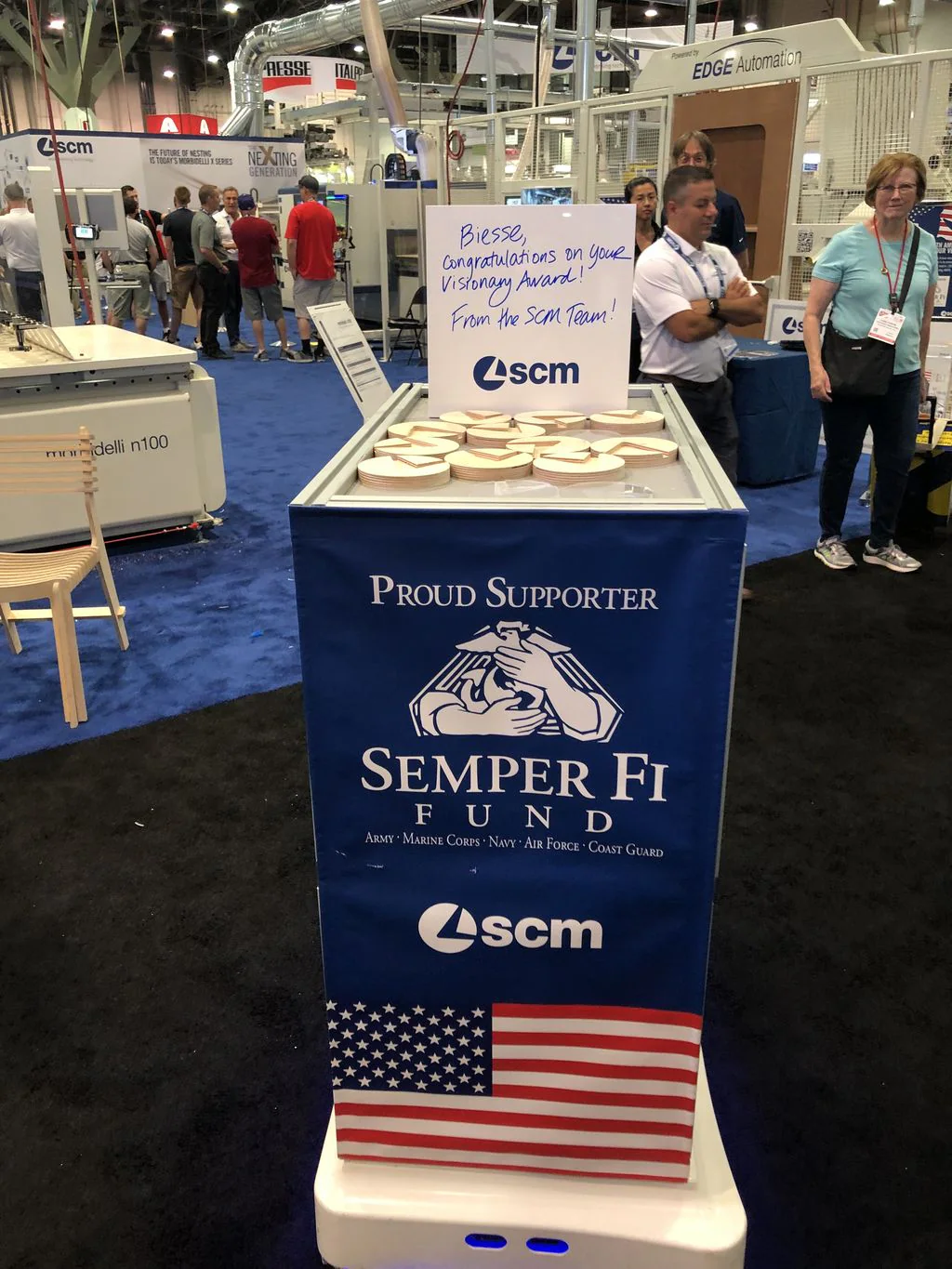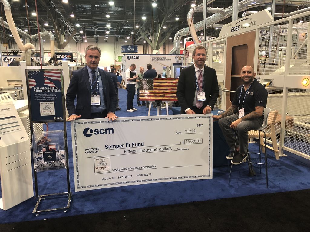Per SCM l’ultima edizione di AWFS è stata anche all’insegna della solidarietà. A conferma del grande supporto dato da SCM Nord America a Semper Fi Fund, l'organizzazione senza scopo di lucro che sostiene i veterani e reduci di guerra feriti e in condizioni di salute critiche irreversibili, è stato donato un assegno di $ 15.000. A consegnarlo all’associazione, il Regional Manager SCM Nord America Giuseppe Riva e il Direttore Commerciale SCM Pietro Gheller.
