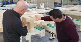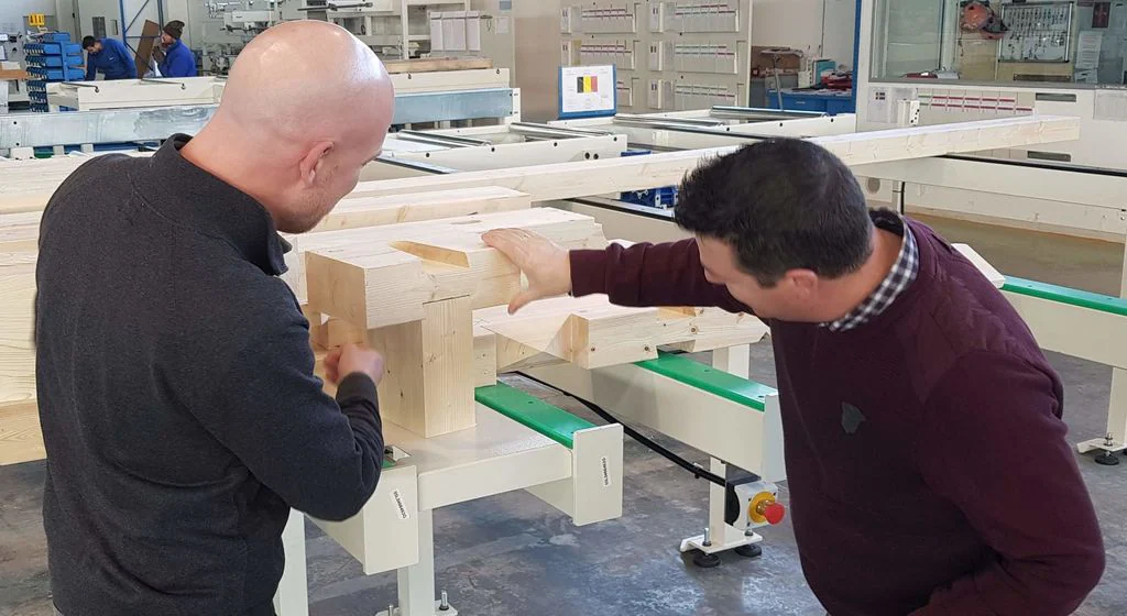 Al termine di una sessione di formazione di 4 giorni presso lo stabilimento SCM di Sinalunga, la macchina OIKOS 12, appartenente a Kristof Van Dun Bvba, è stata testata a fronte di tutte le possibili esigenze di lavorazione su travi in legno lamellare e rovere, nonché su pannelli CLT di grandi dimensioni.