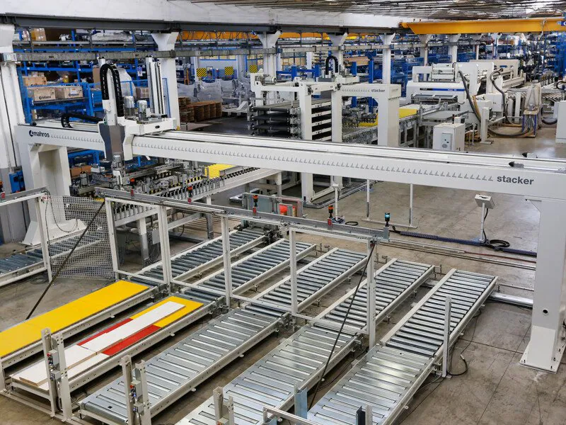 La linea di sezionatura ad elevate performance si compone della sezionatrice automatica Gabbiani OCEAN e del sistema di scarico automatico Mahros Stacker: due eccellenze tecnologiche nel settore furniture scelte dai più importanti produttori di mobili nel mondo.