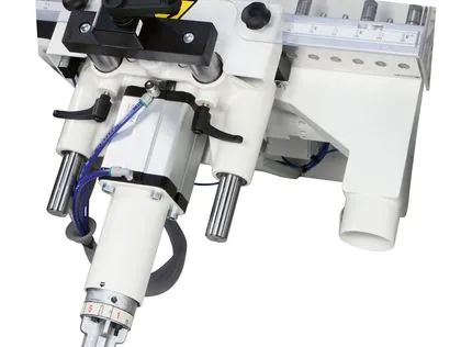 Per una maggiore polivalenza della macchina, è possibile equipaggiare i mandrini con varie tipologie di testine opzionali in grado di realizzare delle pratiche sedi per cerniere.
