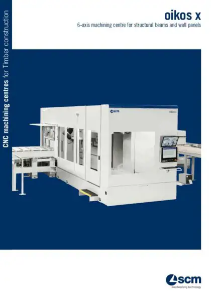 oikos x è il centro di lavoro CNC per la produzione di travi strutturali e pannelli parete X-lam/CLT di larghezza fino a 1250 mm. L’innovativo gruppo operatore a 6 assi permette qualunque lavorazione su tutte le facce dell’elemento in un unico posizionamento e senza ribaltamenti.