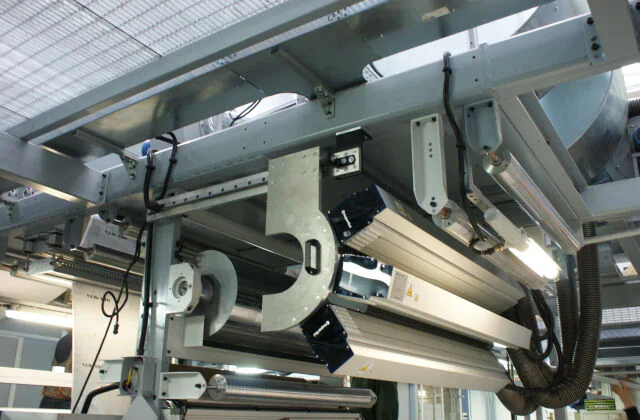 Nel caso di sistemi web to web o foglio a foglio solo con la lampada ad eccimeri in camera inerte. O può essere combinato con pre-trattamento e lampade UV finali.